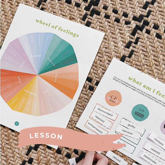 A Lesson (short and interactive) that includes an emotion wheel with 35 emotions and an interactive cut and match activity.