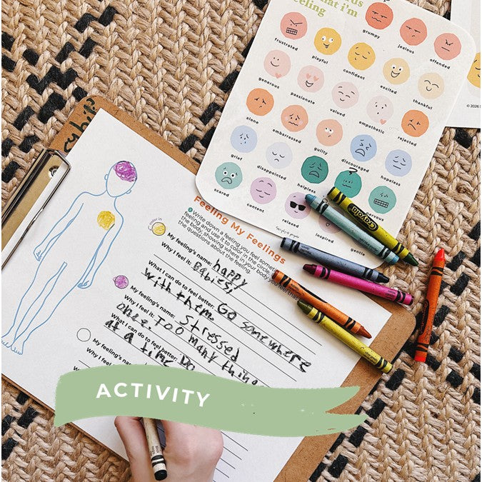 An Activity (deepens learning, more fun for everyone) an emotion/body worksheet to help you child understand where they may feel emotions in their body, name what they are feeling, and steps they can take to feel better.